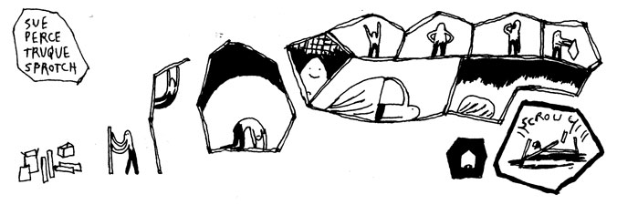 Super-Structure est une (super) structure d'édition Bruxelloise. Habitats précaires, cabanes, bunkers, des abris de toutes sortes peuplent les publications de SPR-STRCTR, visions prévoyantes pour les temps sombres et les apocalypses certainement à venir.